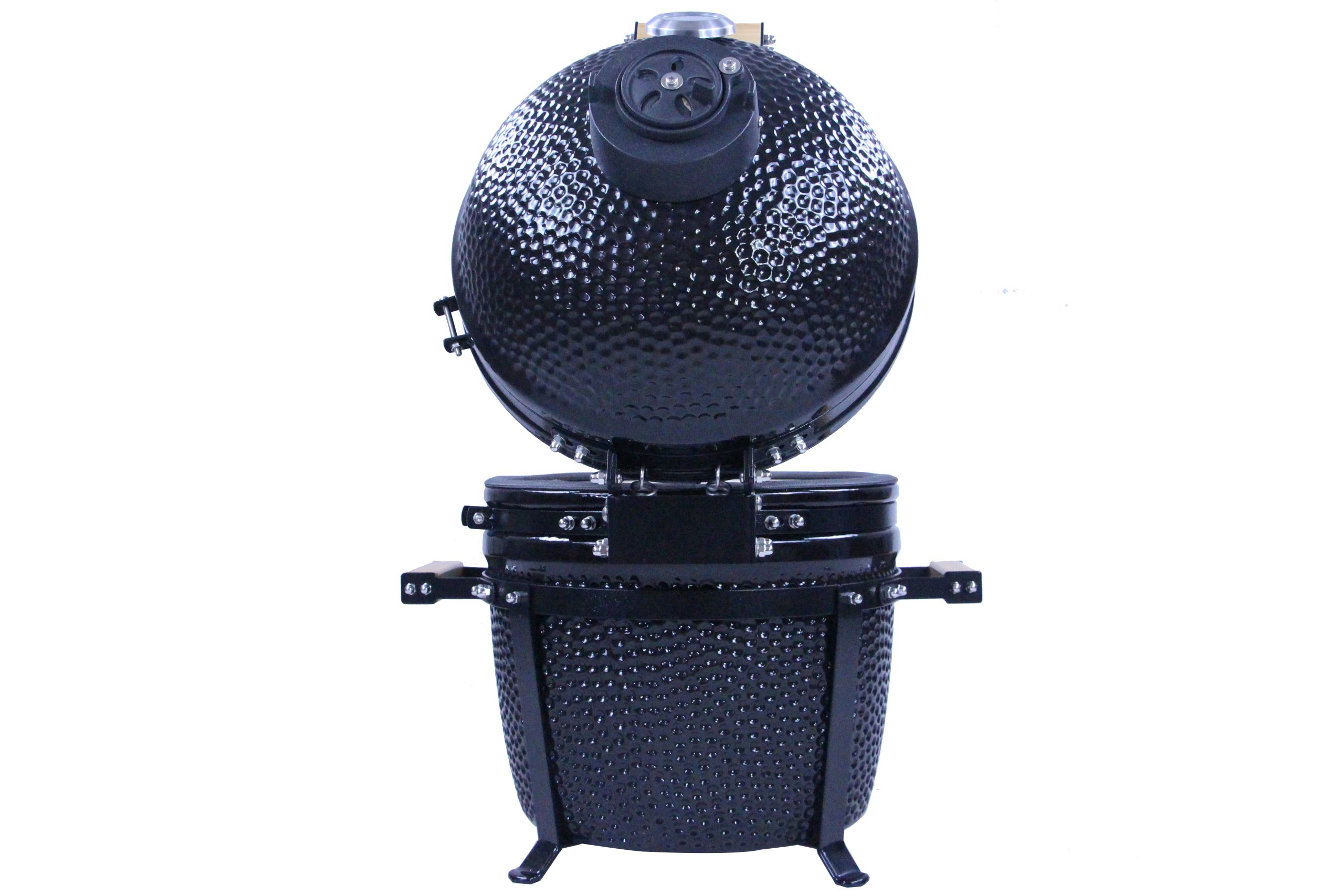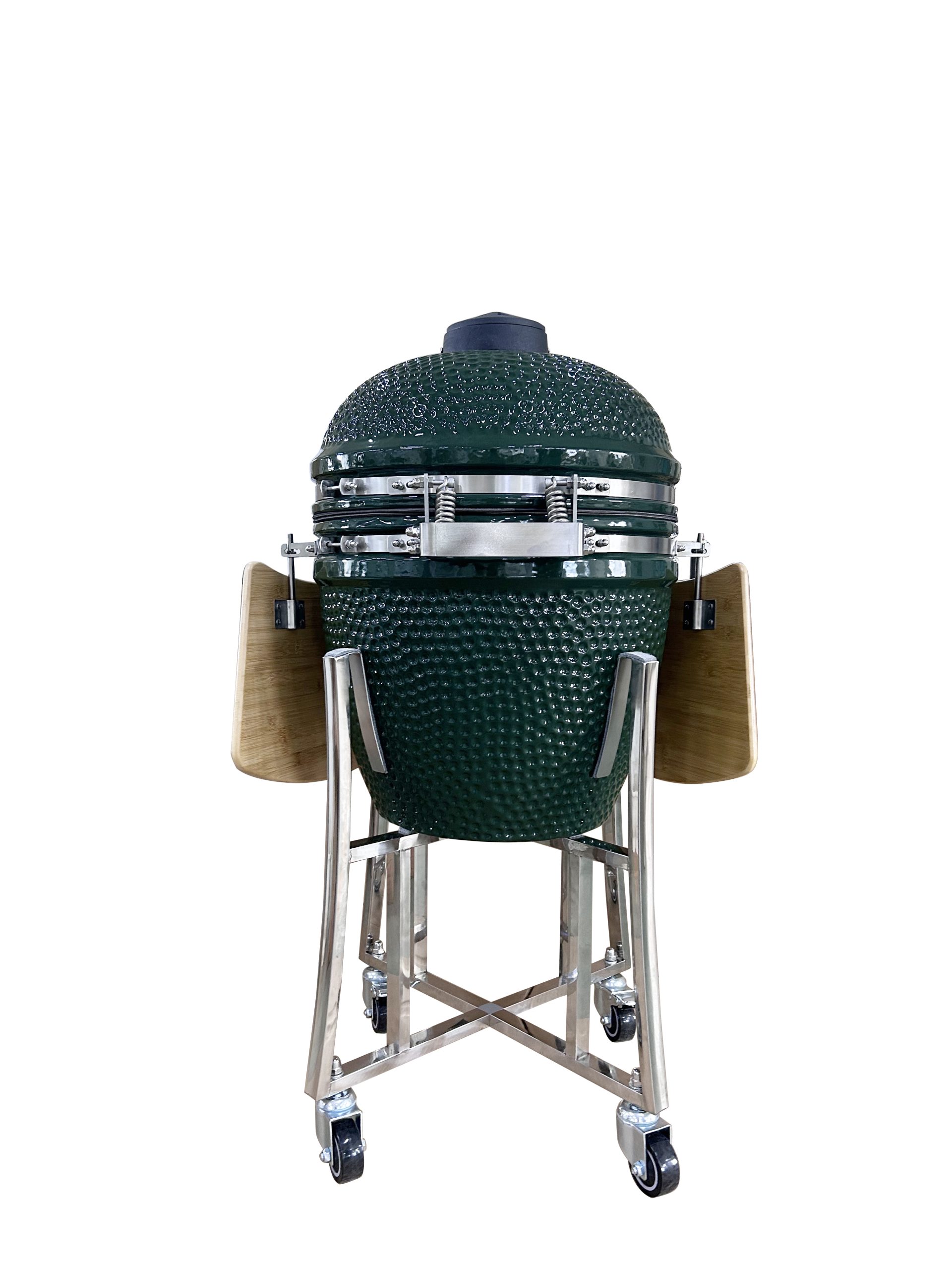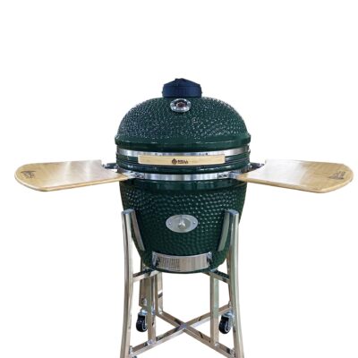 La parrilla cerámica GrillMaster de 27″ tiene diseño en forma de huevo, alimentador de virutas de madera y paredes cerámicas que retienen muy bien el calor. Proporciona alta eficiencia y bajo consumo de carbón para 10–12 personas. Rango de temperatura: 10–450 °C con control preciso. Perfecta para asar, ahumar, rostizar y hornear — con resultados jugosos.