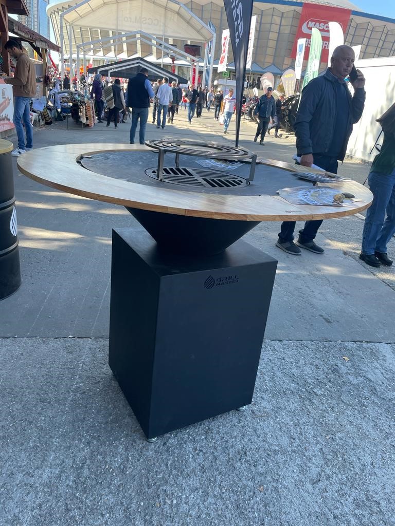 1.508 €GrillMaster Pro GM13 85 cm: Placa 10 mm, altura 53 cm, opción fogón; incluye anillo de madera y accesorios.