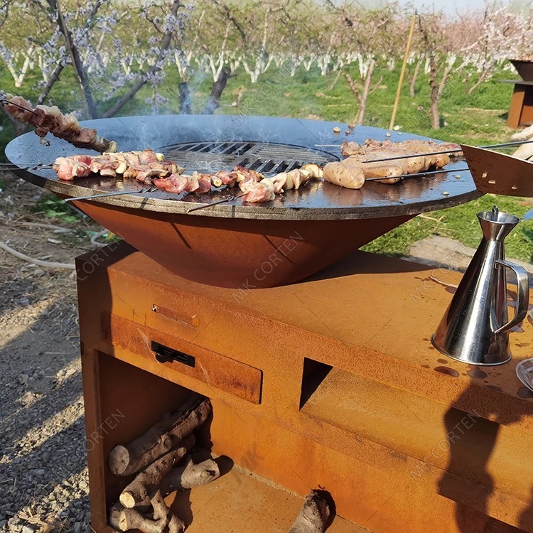Parrilla a leña con placa y encimera de acero Corten “Swan” - COD: GM18